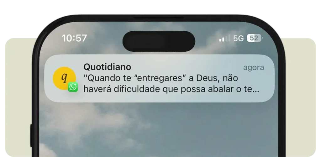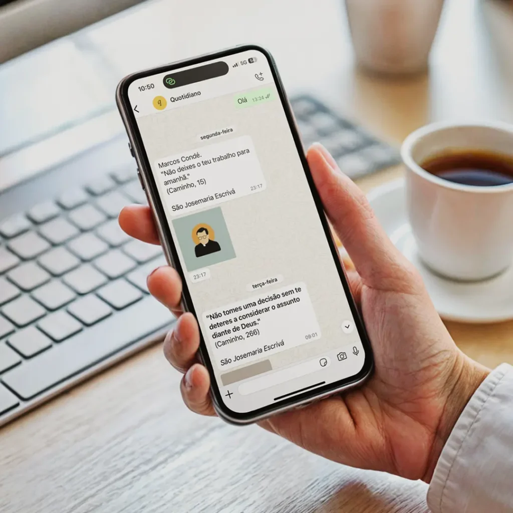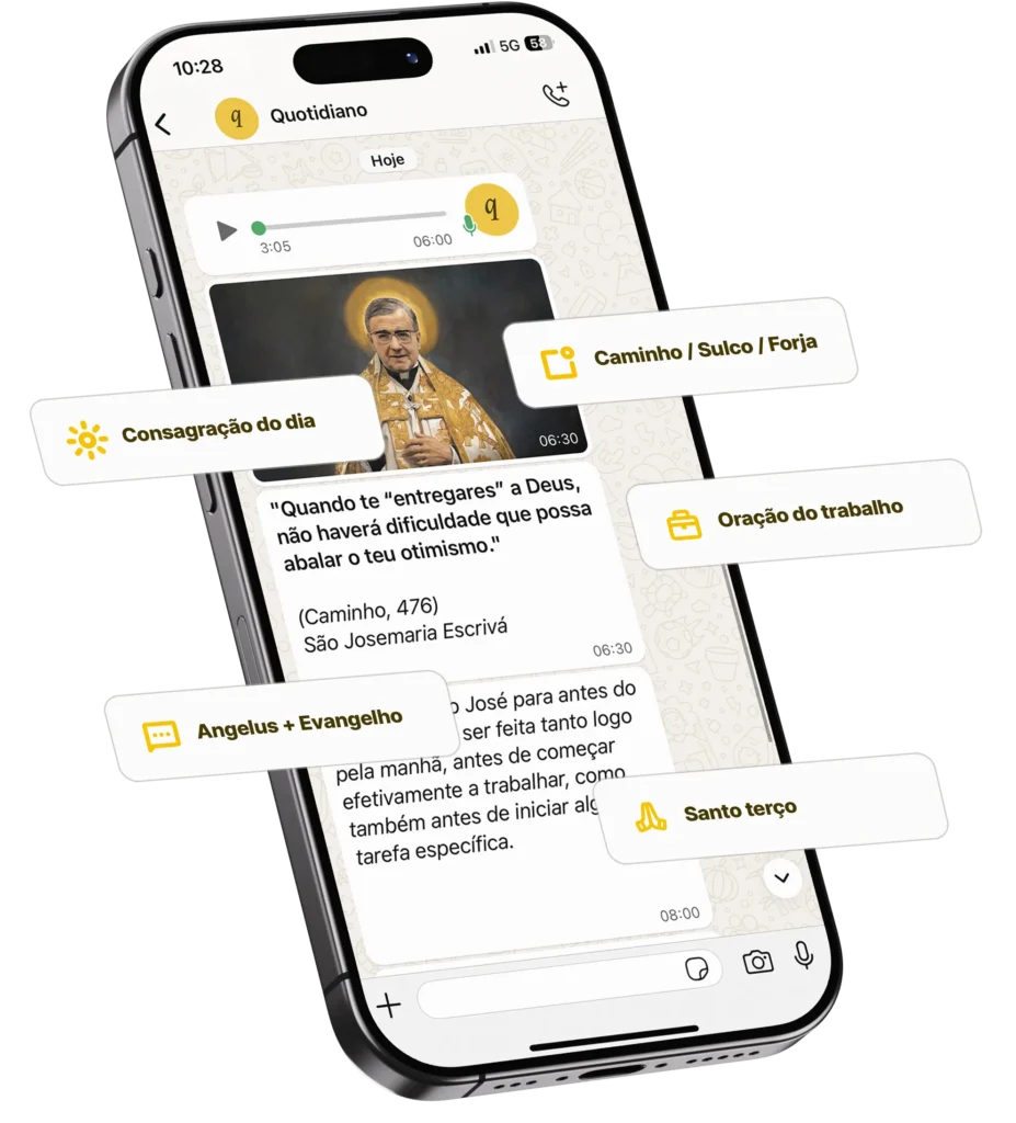 Boas conversas e amizades te aproximam do Céu. Foi pensando nisso que o Quotidiano é como aquele bom amigo que te aproxima de Deus. Você receberá mensagens diretamente no seu WhatsApp ao longo do dia te ajudando na vida espiritual.